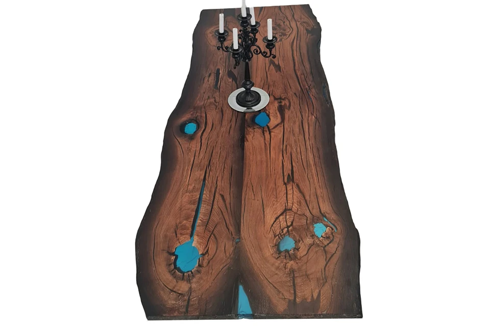 Bog Oak Dining Room Table Top Live Edge Hardwax Oiled (with Resin) 35mm By 980mm By 2560mm