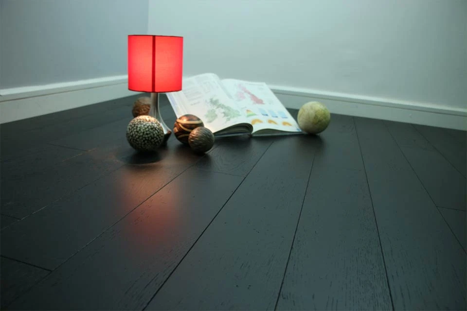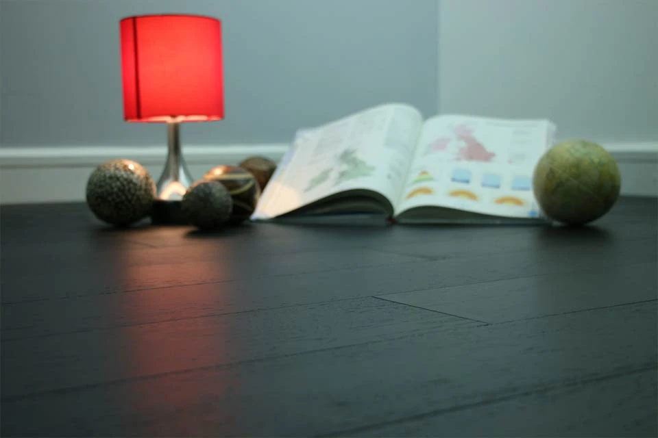 Natural Engineered Flooring Oak Jet Black Brushed UV Lacquered 14/3mm By 190mm By 1900mm