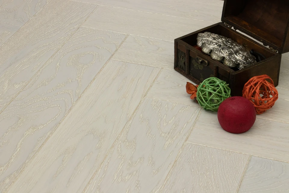 Natural Engineered Flooring Oak Chevron Silver Stone Brushed Uv Lacquered 15/4mm By 90mm By 600mm